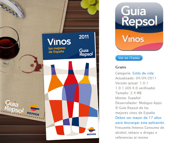 Ya tenemos a nuestra disposición las nuevas Apps de la Guía Repsol 2011 de Vinos de España para iPhone e iPad, Repsol mantiene su línea de volcarse en el mundo digital ofreciendo sus guías gratuitamente a todo el mundo. Hace apenas unos días hablábamos de la Guía Repsol 2011 de España y Portugal para iPad, aplicación que nos proporciona prácticamente toda la información que se ofrece en la edición de papel de la Guía Repsol 2011 de España y Portugal, pero evidentemente quedaban algunas cosas en el tintero, el mundo de los vinos.
