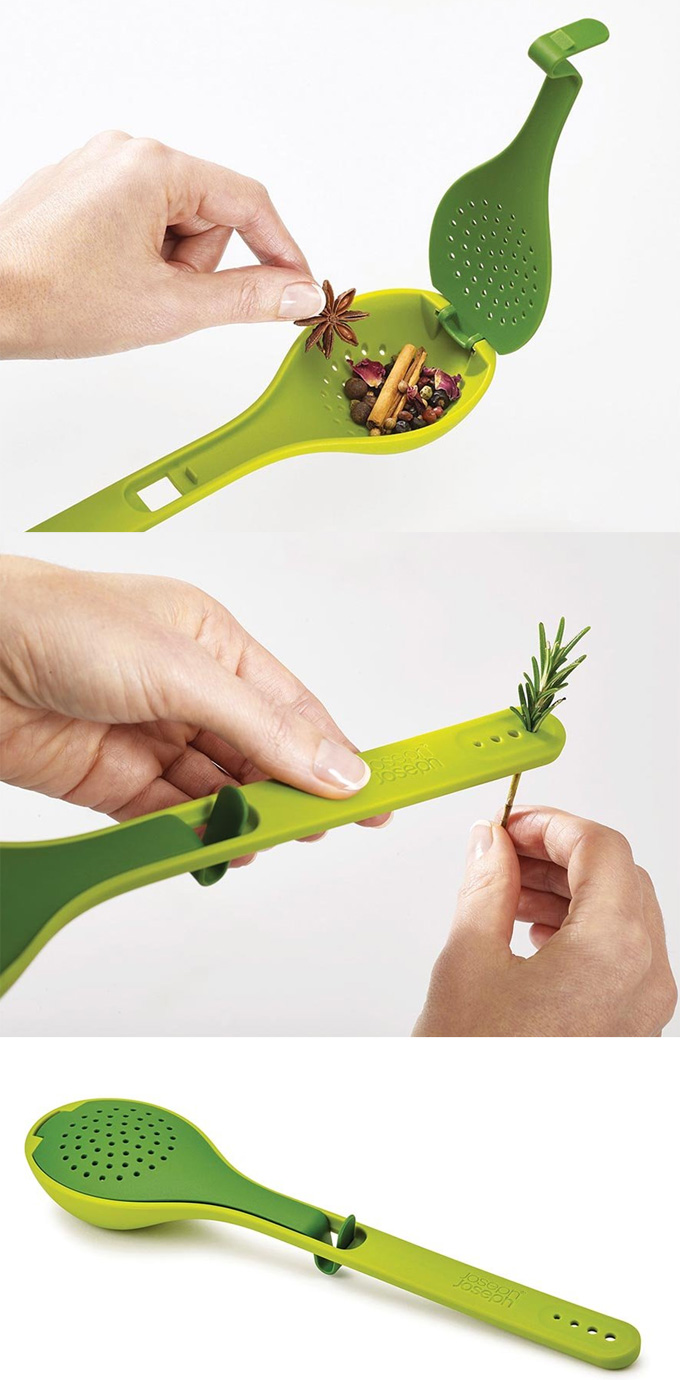 Es más, en el caso de utilizar una estrella de anís, unas vainas de cardamomo, unos granos de pimienta, de enebro… se puede recurrir a recogerlas en una gasa atada en forma de saquito con hilo de cocina, o utilizar uno de esos infusores de té que suele haber en todas las cocinas. Pero bueno, a nosotros no nos importaría contar con la cuchara infusora de sabor Gusto que ha lanzado la firma Joseph Joseph.