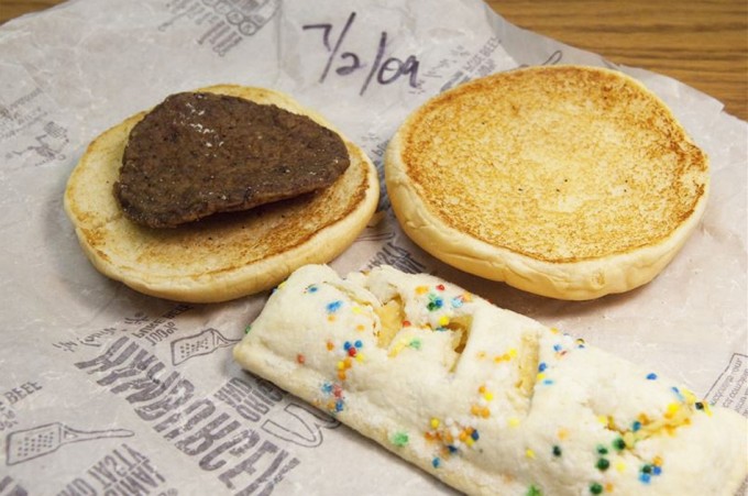 Pues bien, hoy conocemos un nuevo caso que muestra la capacidad incorruptible de una hamburguesa McDonald’s y un McDonalds Holiday Pie, un postre que se anuncia como un crujiente de hojaldre glaseado con azúcar y relleno con un suave flan de vainilla. Marshall V. King, redactor jefe del periódico estadounidense The Elkart Truth, decidió hacer el experimento sabiendo que otras personas habían realizado pruebas de este tipo y quería verificar si los resultados eran los anunciados, por ello guardó en su escritorio el 2 de julio del año 2009 una hamburguesa de la cadena de comida rápida.