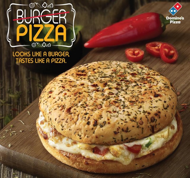En la India, Domino’s Pizza ha presentado un nuevo híbrido culinario con el que pretende captar la atención de los consumidores del país, se trata de una Hamburguesa-Pizza, anunciada como una hamburguesa con las características y bondades de la pizza. Parece que la novedad ha sido bien recibida, ya que en la página de Facebook de Domino’s Pizza India se han dado miles de “me gusta” al nuevo producto y han recibido cientos de comentarios preguntando por su disponibilidad y su precio.