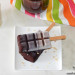 Para hacer la cobertura de chocolate de los helados, ponlo en un bol troceado con el aceite de coco y fúndelo en tiempos de 30 segundos en el microondas o en un cazo al baño maría. Conviene poner el chocolate fundido en un vaso o similar para poder sumergir los polos. Al chocolate fundido se puede añadir la avellana troceada o bolitas de chocolate, y también se pueden añadir después de bañar los polos en el chocolate, y antes de que se solidifique. Después, guarda de nuevo los helados en el congelador hasta el momento de disfrutarlos.