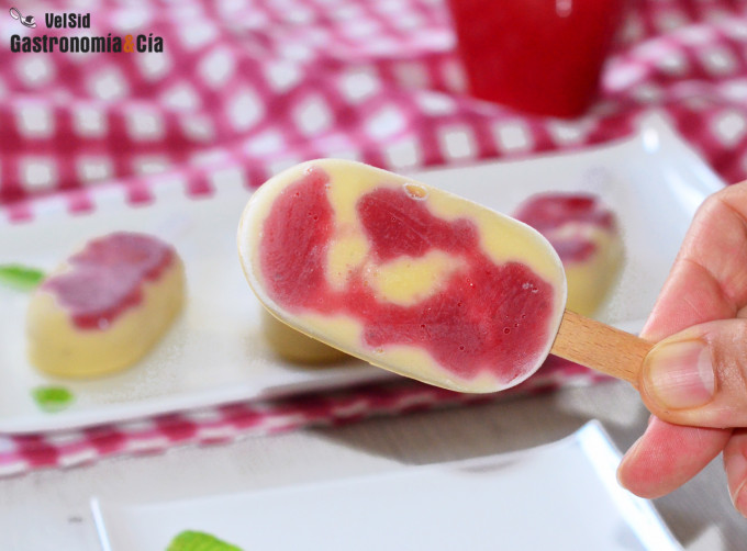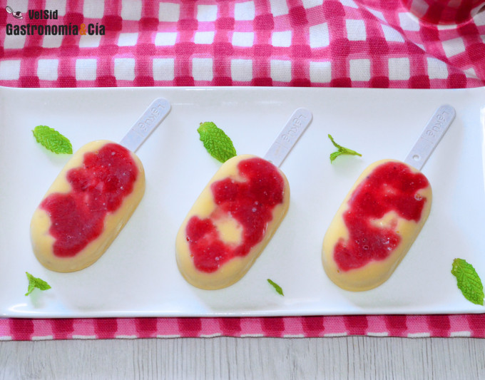 Podemos hacer helados y polos con mango, melocotón, manzana, frutos rojos, piña… Hay distintas formas de hacer que estos helados queden cremosos y a lo largo de estas semanas de primavera y verano vamos a verlas. De momento, empezamos con una receta sencilla que interesará a quienes quieren helados sanos y ricos y prestan especial atención al consumo de proteínas, pues incorpora proteína en polvo, un preparado que toman deportistas, personas mayores que con la alimentación no alcanzan la cantidad recomendada de este macronutriente, etc.