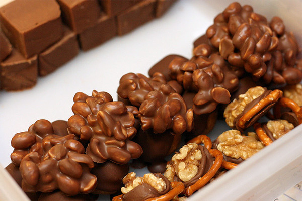 La mayoría de nosotros conocemos como rocas de chocolate un delicioso bocado dulce que se compone principalmente de frutos secos y chocolate, cereales y chocolate… distintas combinaciones que al contar con elementos de formas irregulares que se unen sencillamente con chocolate, no tienen una forma homogénea. Normalmente se funde el chocolate para mezclarlo con los frutos secos y/o los cereales, y se forman depositando porciones de masa con una cuchara, como caen es como después quedarán.