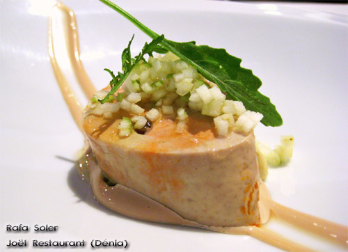 Descubrimos hoy un entrante fresco y muy actual de la carta del restaurante de Rafa Soler en Dénia, Joël Restaurant Bistronómic, el Hígado de rape, soja, manzana y rúcola que podéis ver sobre estas líneas y además, tenemos la fortuna de que el chef comparte con nosotros su elaboración en la sección de Recetas de los Chefs.