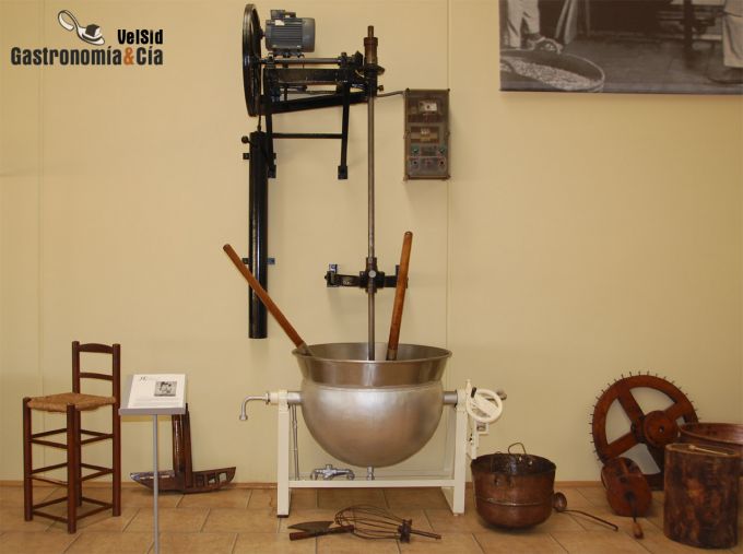 La foto inferior corresponde a un cuenco de doble fondo de vapor que se utilizaba para la cocción de la miel junto al azúcar refinado, este era un proceso muy cuidado por el maestro turronero, ya que debía obtener el punto adecuado de caramelo.