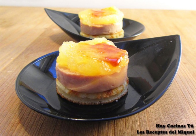 Medallón de foie y puré de manzana caramelizada sobre blinis