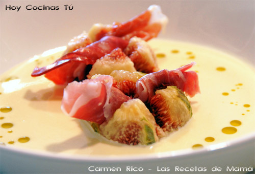 Carmen, autora del blog Las Recetas de Mamá, nos cuenta que le encanta la receta de ajoblanco y siempre suele tomarlo con uvas o con jamón, como es tradición, pero aprovechando la época de higos lo ha preparado con este fruto, Ajoblanco con higos y jamón. ¿Os apetece probarlo?