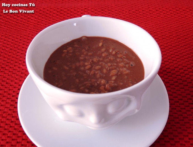 Servir arroz con chocolate con leche aún caliente, y … have a rice day!