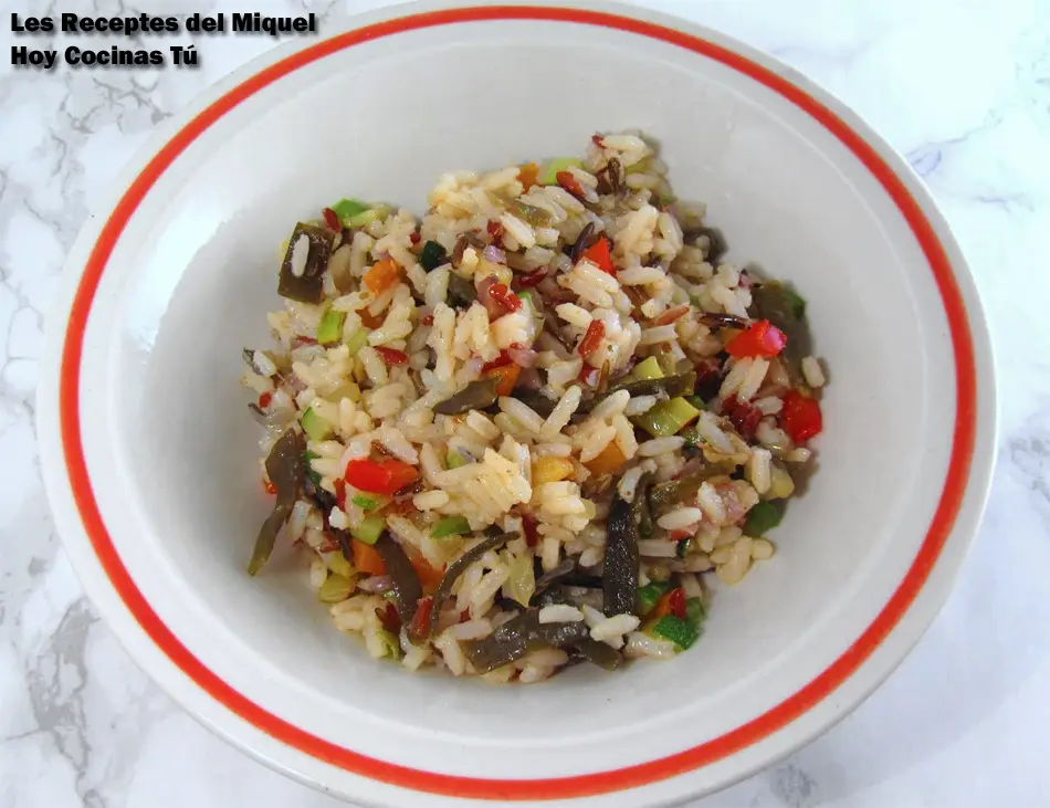 ¿Se puede hacer un plato de los que se enmarcan como ‘mar y montaña’ que sea vegetariano o vegano? Podríamos decir que sí, y como ejemplo tenemos la receta de Arroz con verduras y espagueti de mar que comparte Miquel, autor del blog Les Receptes del Miquel, en vuestra sección de recetas ‘Hoy Cocinas Tú‘. Es un entrante muy fácil de hacer, aunque le proporciona una cocción un poco más larga de lo habitual al arroz, de todos modos, cada uno de vosotros puede inspirarse en esta receta de arroz y adaptarla a los ingredientes y métodos de cocción que consideren oportunos.