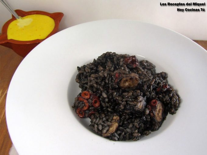 Quienes disfrutamos los jueves, los domingos o cualquier día de la semana de los arroces y paellas, no podemos resistirnos a probar nuevas propuestas, y hoy nos llega una de la cocina de Les Receptes del Miquel, quien comparte su receta de Arroz negro con pulpo y all i oli de azafrán en vuestra sección Hoy Cocinas Tú. Con las preparaciones previas oportunas, como la cocción anticipada del pulpo (o comprando el pulpo ya cocido), esta receta de arroz se puede hacer cualquier día de la semana, pues la cocción del cereal es de poco más de 15 minutos, y con el resto de la elaboración, no nos llevará mucho más de media hora.