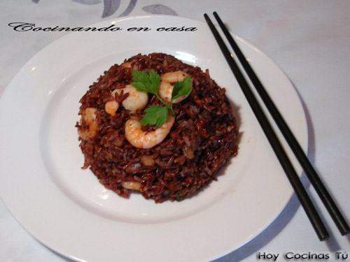 Nos ha encantado que en la sección de vuestras recetas Hoy Cocinas Tú, se incorpore un plato con uno de los tipos de arroz que nos gusta elaborar ocasionalmente, el arroz rojo, una de las recetas que elaboramos con él es el Arroz rojo cremoso con ternera. La receta de hoy es un Arroz rojo con langostinos en wok que comparte con nosotros Amparo, autora del blog Cocinando en casa.