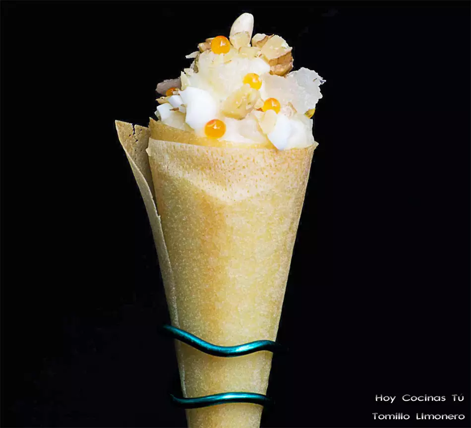El atascaburras es un plato tradicional del invierno albaceteño, que en esta ocasión tenemos en versión actualizada gracias a la creatividad de Alejandro, autor del blog Tomillo Limonero, nos propone elaborar un atractivo aperitivo como este Atascaburras en cucurucho de pasta brick. Alejandro comparte su receta en vuestra sección Hoy Cocinas Tú y nos cuenta lo siguiente: