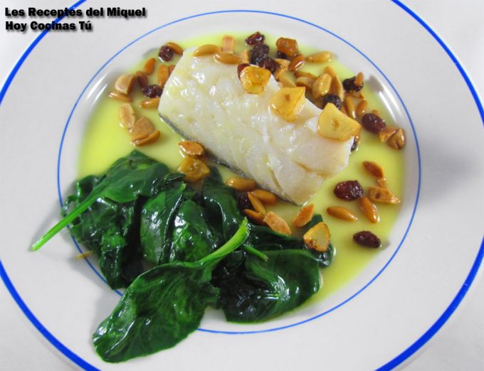 En estas fechas el bacalao es uno de los pescados más consumidos, al menos por las familias que siguen las tradiciones culinarias de Semana Santa, pero la receta que tenemos que compartir con vosotros y que nos ha enviado Miquel, autor del blog Les Receptes del Miquel, no dejéis de guardarla en vuestros favoritos para disfrutarla en cualquier momento del año, pues tiene que ser una delicia su plato de Bacalao con frutos secos, espinacas y su pilpil, deliciosa combinación, ¿no os parece?