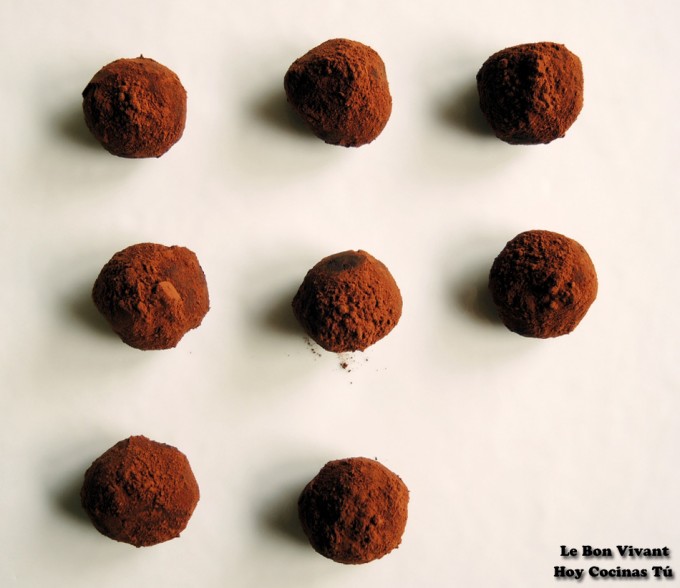 Dar forma a los bombones formando con las manos bolitas de unos 18-20 gramos cada una, una vez formadas las bolitas rebozarlas en cacao en polvo y dejar reposar un par de horas antes de consumir.