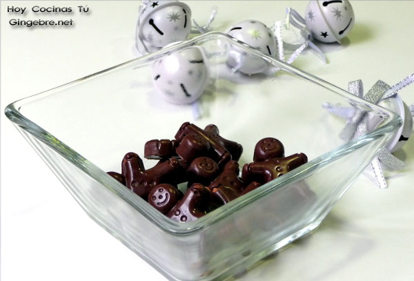 Neus ha elegido el molde con la forma del tradicional Ginger Man (Hombre de jengibre), una buena propuesta para las fechas que se aproximan, nuestros invitados caerán rendidos ante unos bombones aún después de haber disfrutado de un gran menú de Navidad. Es muy importante elegir un chocolate de buena calidad, y sobre el jengibre confitado o escarchado, se puede adquirir preparado, pero también lo podéis hacer en casa, aquí os explicamos cómo hacer jengibre confitado.