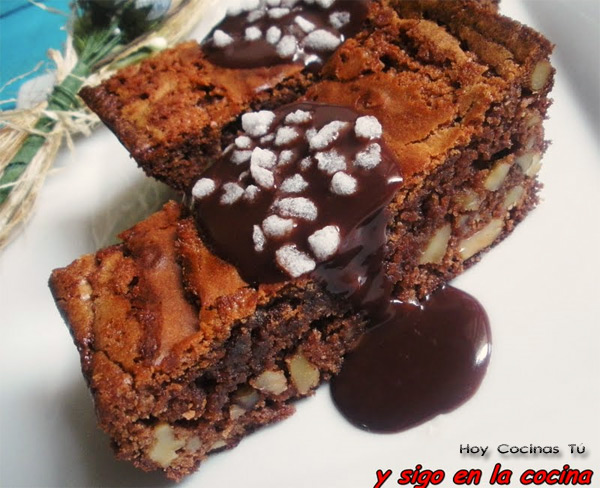 Como sucede con la Tarta de manzana, que siempre se pueden hacer variantes de la receta tradicional, ocurre también con el Brownie, ese delicioso bizcocho de chocolate húmedo y cremoso-esponjoso, de hecho, en Gastronomía & Cía hay varias recetas de brownie, pero como dice Liliana, autora del blog Y Sigo en la Cocina, no se ve a menudo un brownie como el suyo, el que comparte en vuestra sección de recetas Hoy Cocinas Tú, es el Brownie de nueces con chocolate con leche a la canela.
