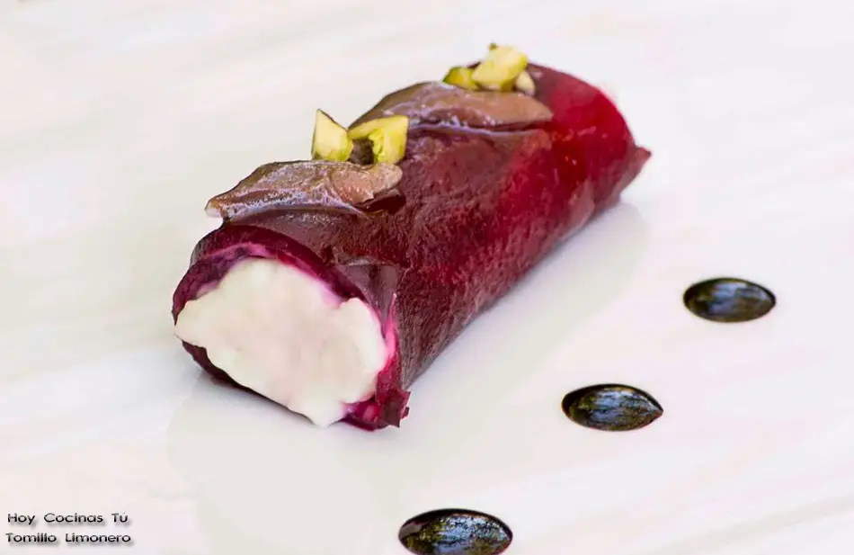 A continuación podéis ver el paso a paso de la elaboración del canelón de remolacha y de la farsa de queso, además, se incorporan otros matices de sabor y de textura con anchoa, pistachos, jengibre… Tomad nota de la receta para hacer este aperitivo, es fácil y el éxito está garantizado cuando tengas invitados.