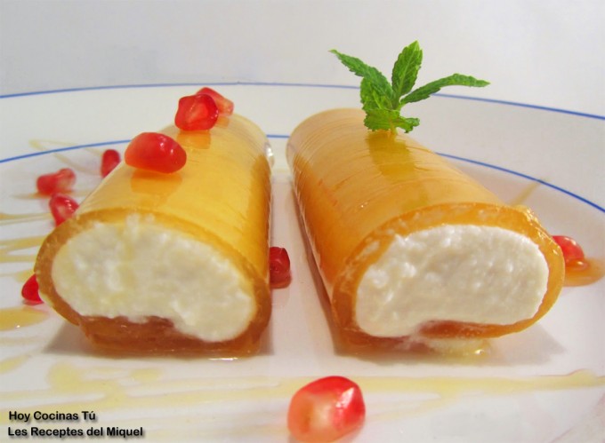 Hacer una gelatina para simular la pasta de los canelones es un recurso postrero muy recurrido y que suele tener mucho éxito (y también en platos salados). Se pueden hacer postres sencillos y ricos como el que nos propone Miquel en vuestra sección de recetas Hoy Cocinas Tú, unos Canelones de miel y requesón.