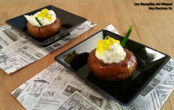 Se trata de unos champiñones asados rellenos de brandada de bacalao, por un lado se asan los champiñones limpios y bien aderezados en el horno, por otro lado se hace la brandada de bacalao (la receta de Miquel o la vuestra, si tenéis vuestras fórmula favorita), y después se unen para disfrutar de un sabroso y jugoso bocado. ¿No os parece un aperitivo ideal para la próxima comida de celebración que tengáis? Pues tomad nota de la receta paso a paso a continuación y/o adaptadla a vuestros gustos o necesidades. ¡Bon Appétit!