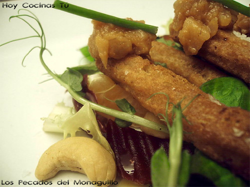 Churros de cocido, esto es lo que nos muestran las fotografías que nos envía Monaguillo, el creador de esta y muchas otras recetas que nos dejan con la boca abierta (esperando a ver si se pueden catar). Quienes conocéis al autor del blog Los Pecados del Monaguillo sabéis que hace arte en la cocina, elabora platos impensables para muchos, siempre sorprendentes y siempre seductores a la vista y al paladar, quien dice que los cocineros no deben dejar de tener ideas, conoce a Monaguillo.
