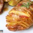 Preparamos las patatas con el corte de Patatas Hasselback y las ponemos en una bandeja del horno junto al conejo, añadimos un poco de aceite de oliva virgen extra. Horneamos 50-60 minutos, lo vamos regando con un poco de vino blanco en varias ocasiones y dando la vuelta al conejo. Si vemos que las patatas se hacen antes, las sacamos y las envolvemos en papel de aluminio para que aguanten calientes.