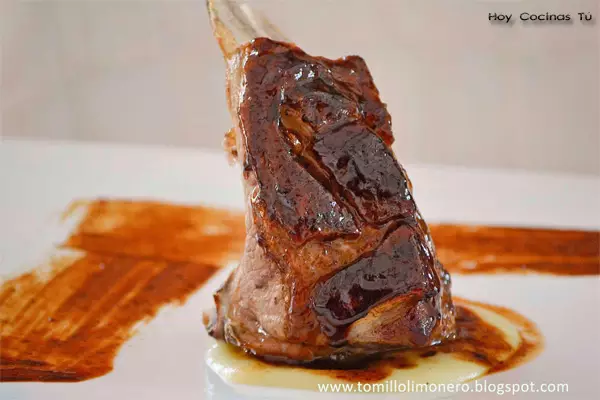 Marcamos en una sartén caliente el cordero por la parte de la grasa hasta que esté dorado y crujiente. A continuación, metemos al horno a 180º C durante 20 minutos.