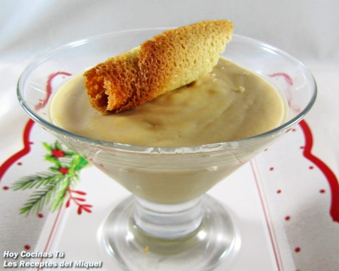 A la hora de servir el postre, poner un trozo de barquillo o un poco de turrón desmigado.