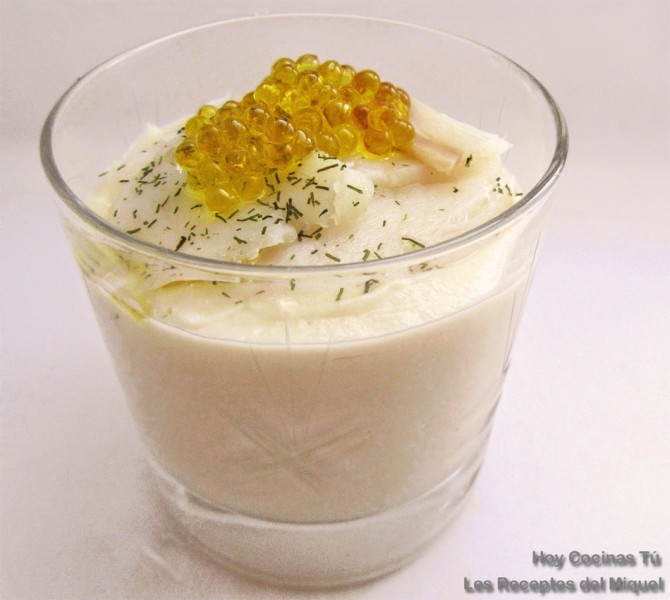 Es la propuesta que nos hace el autor del blog Les Receptes del Miquel para disfrutar de un cremoso de coliflor acompañado de un buen bacalao ahumado con un toque de eneldo.