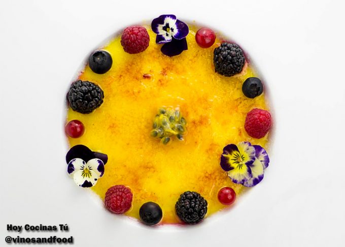 Y no sólo es una receta que se cocina a baja temperatura para obtener una textura más cremosa y suave, se trata de una Crème brûlée de fruta de la pasión con frutos del bosque, con lo que el postre se convierte en un festival para el paladar también por sus sabores, ideal tanto para los muy golosos como para los que no lo son tanto, pues las frutas ligeramente ácidas suelen agradar a quienes prescindirían de los platos dulces. Bajo estas líneas tenéis la receta, y si queréis saber con qué vino nos recomienda tomar este postre su creador, no dejéis de pasar por su perfil de Instagram.