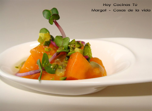 Para hacer esta receta que Margot comparte en la sección de vuestras recetas Hoy Cocinas Tú no tendremos dificultades, pues estas frutas tropicales ya se encuentran fácilmente en grandes superficies y en fruterías bien surtidas, además, el maracuyá y el tamarillo hacen un matrimonio ideal. ¿Queréis probar este aperitivo con vinagreta de Maracuyá?, tomad nota que es muy fácil.