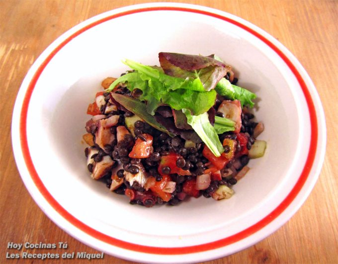 Si os gustan las ensaladas de legumbres tanto como a nosotros, os encantará probar la receta que ha compartido con nosotros Miquel, autor del blog Les Receptes del Miquel, para vuestra sección ‘Hoy Cocinas Tú‘. Es una ensalada de lentejas caviar con pulpo y crudités, y nos parece que no puede ser más apetecible, además de ser un plato completo, nutritivo y saludable.