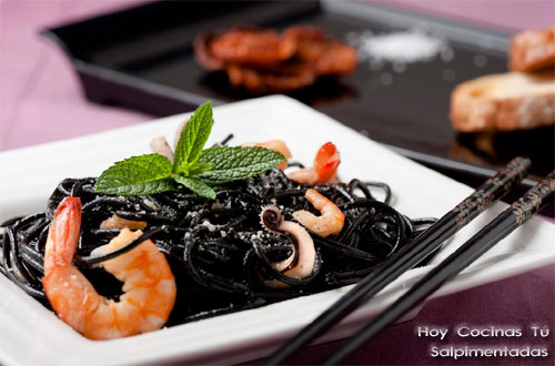 Las Cookin’ Sisters de Salpimentadas piensan como muchos de nosotros, la pasta es siempre una opción acertada, sea en una comida informal o festiva, podemos sorprender a nuestros comensales. Para quienes deseen darle un toque especial a la pasta, nos recomiendan probar la receta que comparten en vuestra sección Hoy Cocinas Tú, los Espaguetis negros con sepia, bueno… y con langostinos, gambas, rape… sin duda, un sabroso plato de pasta con un pronunciado sabor a mar.