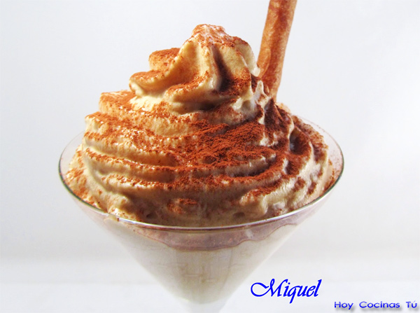 Esta Espuma de tiramisú es una de las propuestas de Miquel, autor del blog Les Receptes del Miquel, para ofrecer un postre festivo, muy goloso y rico, pero que no favorecerá el empacho, se toma una pequeña cantidad aunque tiene volumen, pues ya sabéis que las espumas contienen mucho aire. Por eso comparte la receta en vuestra sección Hoy Cocinas Tú, además de pensar en quien en estos días desee estrenar su sifón de espumas.