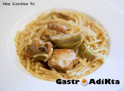 Anna, autora del blog Gastroadikta, nos presenta una receta para vuestra sección Hoy Cocinas Tú muy nutritiva y reconfortante, son los Fideos a la cazuela con costilla y alcachofas que podéis ver sobre estas líneas.