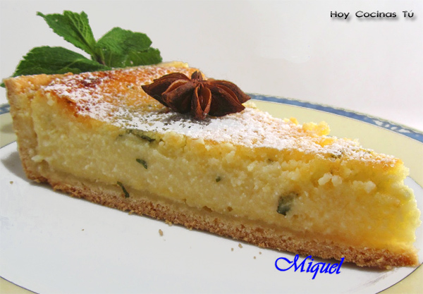 Mmmm! qué buena pinta tiene! me encanta este pastel de queso con el saborcito a hierbabuena y el toque de anís… ahora mismo me comería un trozo.