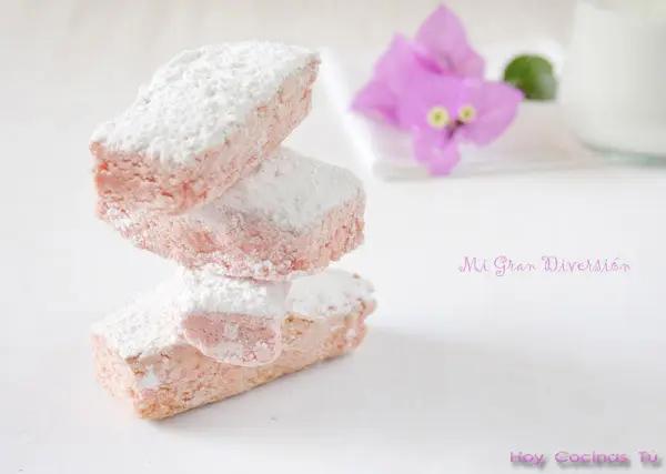 Los Biscuits Roses de Reims son unas galletas de color rosa, espolvoreadas con azúcar glas, tradicionales de la ciudad de Reims (Francia), son algo secas, pero están deliciosas, y como os comentamos cuando compartimos nuestra receta de biscuits de Reims, suelen servirse con una copa de champán, las galletas se mojan en él. Dolores, autora del blog Mi Gran Diversión, también tiene una receta que denomina Galletas Rose de Reims, y la ha querido compartir en vuestra sección Hoy Cocinas Tú.
