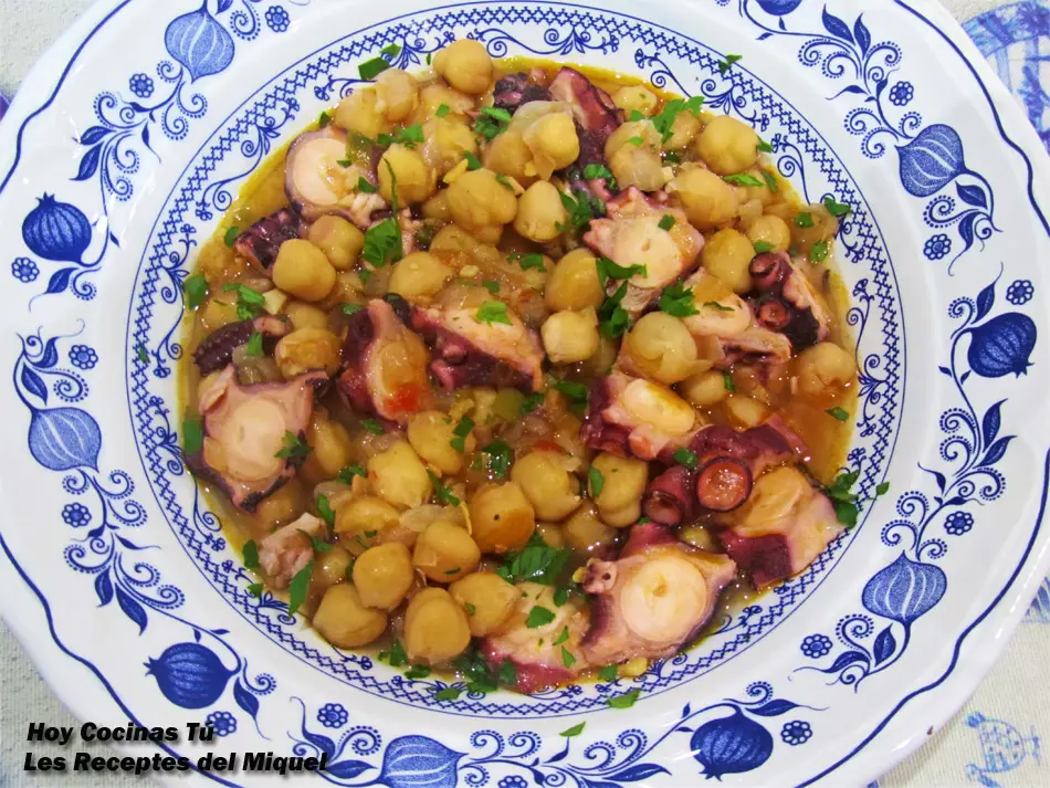 Si os apasionan el pulpo y los garbanzos como a nosotros, os va a encantar la receta que tenemos en vuestra sección ‘Hoy Cocinas Tú‘ y que nos ha hecho llegar Miquel, autor del blog ‘Les Receptes del Miquel‘, se trata de su receta de Garbanzos con sofrito y pulpo, un plato completo y lleno de sabor y, no menos importante, muy nutritivo y saludable. Es una de esas comidas ideales para toda la familia que, además, se puede disfrutar todo el año.