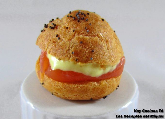 Las gougères son una de las elaboraciones tradicionales, en este caso de la Borgoña francesa, que se elabora con la masa o pasta choux. Su particularidad es que incluye queso, lo que hace que sea aún más delicioso el bocado, tanto si se come solo como si se rellena. Y opciones de relleno hay infinitas, pero hoy nos quedamos con la propuesta que comparte Miquel, autor el blog Les Receptes del Miquel, en vuestra sección Hoy Cocinas Tú, con sus Gougères con salmón ahumado y tzatziki de mango.