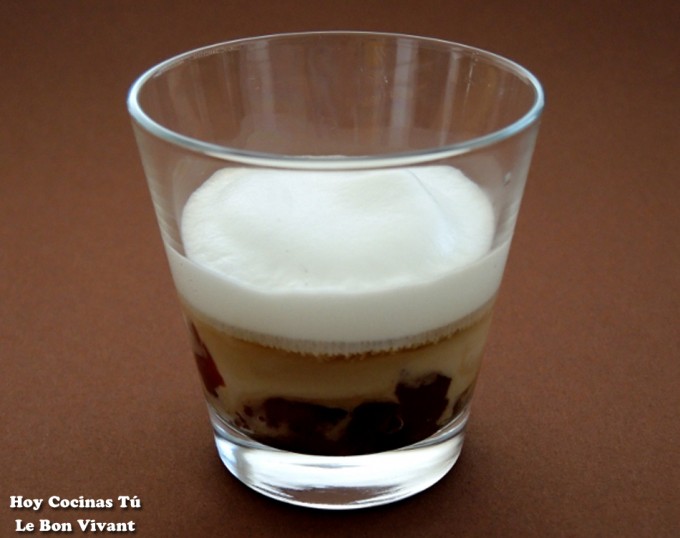 Verter un poco de leche fría y finalmente un poco de espuma de leche para cubrir.