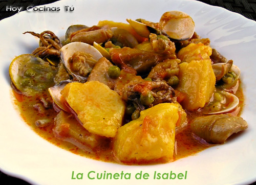 La verdad es que tocaba adentrarnos en los guisos marineros, en los platos de cuchara que los frutos del mar enriquecen y el que ilustra este post es el Guiso de calamares y almejas que comparte en vuestra sección de recetas Hoy Cocinas Tú, la autora del blog La cuineta de Isabel.