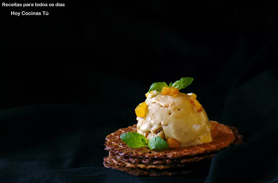 Unos melocotones asados con aguardiente y canela son la base para elaborar el apetitoso helado que nos propone Raquel, autora del blog Receitas para todos os dias. Es una tentación probarlo ¿verdad?, pues ya podemos empezar a preparar el Helado de melocotón asado, qué mejor momento que este, cuando esta fruta está en su mejor momento, además, no sabemos vosotros, pero en casa en estas fechas los helados van que vuelan, tanto los helados con frutas, como los de chocolate, limón, turrón…