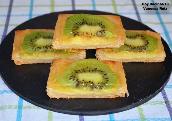 Para muchos son irresistibles las tartas de hojaldre con frutas frescas, no importa si son manzanas, fresas, kiwis… El conjunto ofrece una degustación exquisita, una masa ligera y crujiente con un delicioso sabor a mantequilla, una suave crema pastelera, untuosa, y una (o varias) refrescante fruta natural que sabe a gloria. Pues aquí tenemos la tentación, en vuestra sección de recetas Hoy Cocinas Tú, tenemos un hojaldre con natillas y kiwi que comparte con nosotros Vanessa.