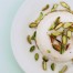 Colar la leche para retirar el cardamomo, volver a poner la leche al fuego y añadir los pistachos, la almendra y el azafrán, remover hasta que espese.