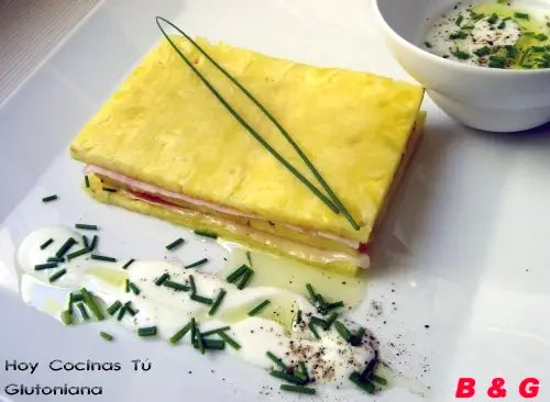 La Lasaña fría de piña y jamón que comparte con nosotros Glutoniana, seguro que va a ser un entrante que va a ocupar muchas mesas este verano, es un plato muy refrescante, nutritivo y además sin gluten, apto para las personas que padecen celiaquía. La autora del blog Las recetas de Glutoniana nos cuenta que vio esta receta en un programa de televisión y que también incorporaba patata entre sus ingredientes, pero si queremos un plato más ligero e igualmente delicioso, somos de la misma opinión, prescindimos de la patata.