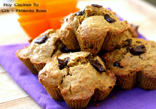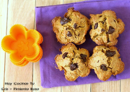 Cris, una de las autoras del blog Pimienta Rosa, comparte en vuestra sección de recetas Hoy Cocinas Tú estas apetitosas Magdalenas de calabaza y chocolate, una combinación que a nosotros nos encanta, si no la habéis probado no dudéis en hacerlo. Cris además nos anima a probar esta receta con variantes como utilizar boniato en lugar de calabaza, sustituir el chocolate por frutas secas o utilizar harina integral si lo deseamos.