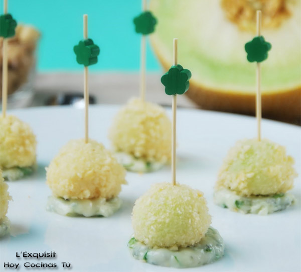 Vuelve a ser protagonista el melón para este aperitivo que comparte en vuestra sección de recetas Hoy Cocinas Tú Sonia, autora del blog L’Exquisit, es Melón rebozado sobre gorgonzola y albahaca, un curioso aperitivo que combina el estilo del pincho con un dip.