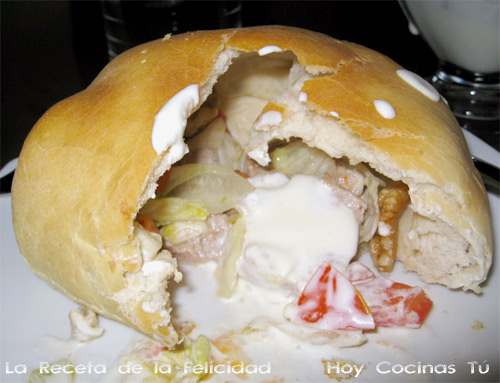 La autora del blog La Receta de la Felicidad nos explica de cómo se elabora esta receta que, como ella afirma «suena psicodélico pero no es más que un pan hueco que nos permite múltiples rellenos: ensaladas, revueltos,… En este caso he rellenado con una ensalada de solomillo con roquefort. Vuestros invitados se quedarán con la boca abierta».