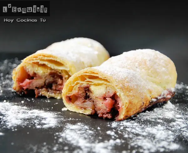 Hay ocasiones en las que nuestros amigos de la blogosfera culinaria nos ponen los dientes largos con recetas que por cuestiones de temporalidad no vamos a poder hacer, como este Mini strudel de pera, fresas y chocolate que comparte Sonia de L’Exquisit con todos nosotros en vuestra sección Hoy Cocinas Tú, claro, como bien detalla, ella vive en Holanda, y allí todavía tienen fresas…