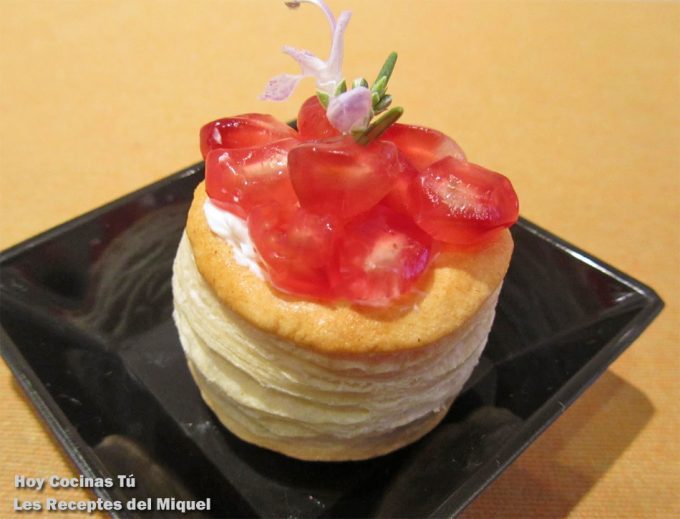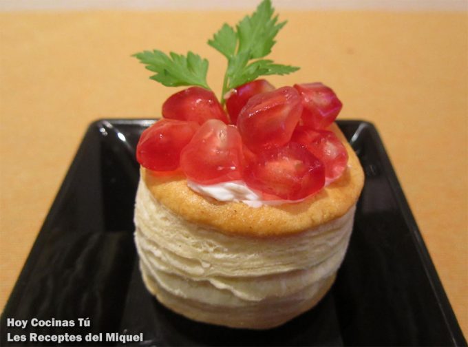 En vuestra sección de recetas ‘Hoy Cocinas Tú‘, tenemos de nuevo una propuesta muy apetecible que comparte Miquel, autor del blog Les Receptes del Miquel, y nos cuenta que es un aperitivo delicioso, pero que se puede convertir fácilmente en un postre, basta con cambiar un ingrediente, y eso que el mini volován de queso mascarpone y granada sólo necesita tres ingredientes.