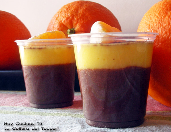 La presentación de este postre compuesto por Mousse de chocolate con orange curd es en pequeños vasitos, así nos propone Mª José, autora del blog La Cultura del Tupper, que deleitemos a nuestros invitados con una irresistible combinación de sabores y texturas, aunque veréis que el tipo de mousse es un tanto particular. Nosotros lo conocimos a través de una receta de Nigella Lawson, de hecho, aparece en su libro La Cocina de Nigella Lawson, como veréis a continuación se elabora con nubes o marshmallows.